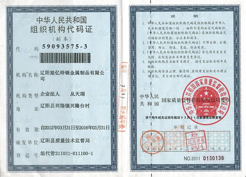 遼陽旭億鋅鋼金屬制品有限公司